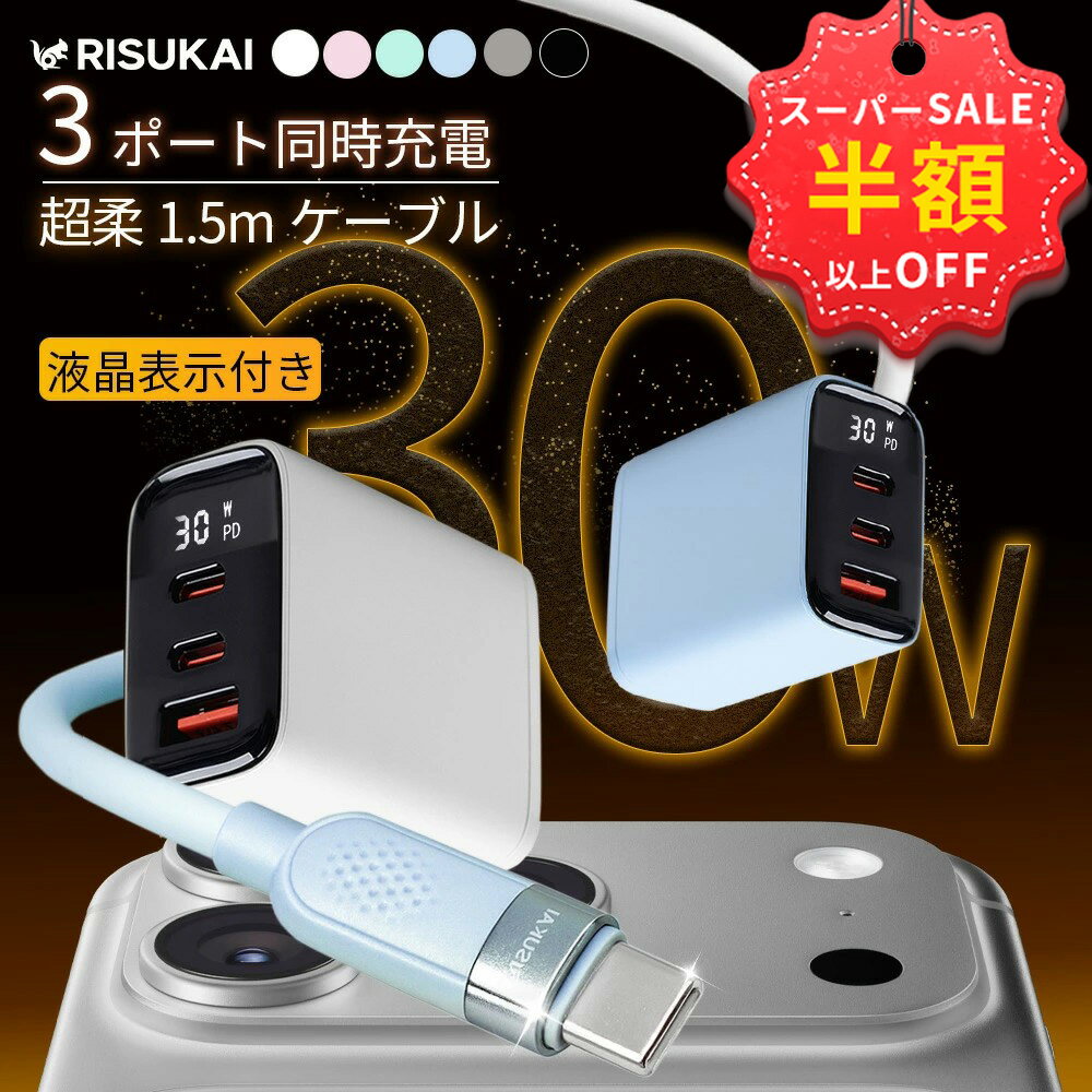 【赤字覚悟!SS限定★2980円→884円★30Wパワー搭載★iPhone 3 ポート USB-C 60 W 充電 ケーブル アンドロイド AC アダプター 充電器 高速 チャージ ケーブル 液晶 充電器 iPhone 16 タイプ C ケーブル type C 充電 ケーブル iphone 17 充電 ケーブル シリコン 充電 コード】は、価格以上の価値がある、非常にお得な充電器です。